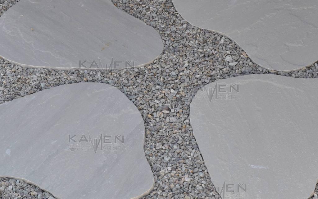 Indické pieskovcovité šlapáky upravené sekaním do oválneho piškótového tvaru.