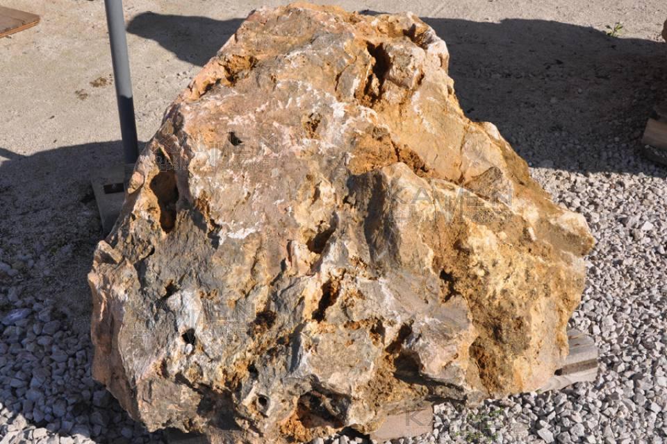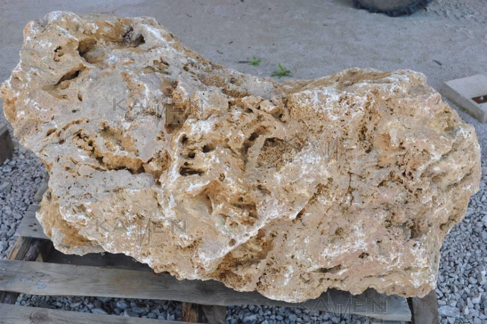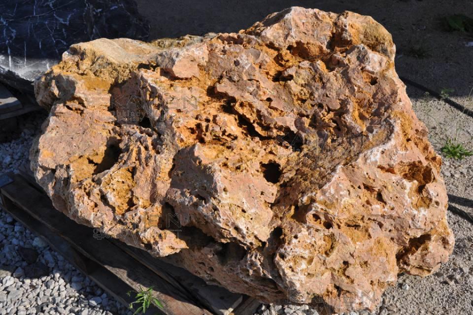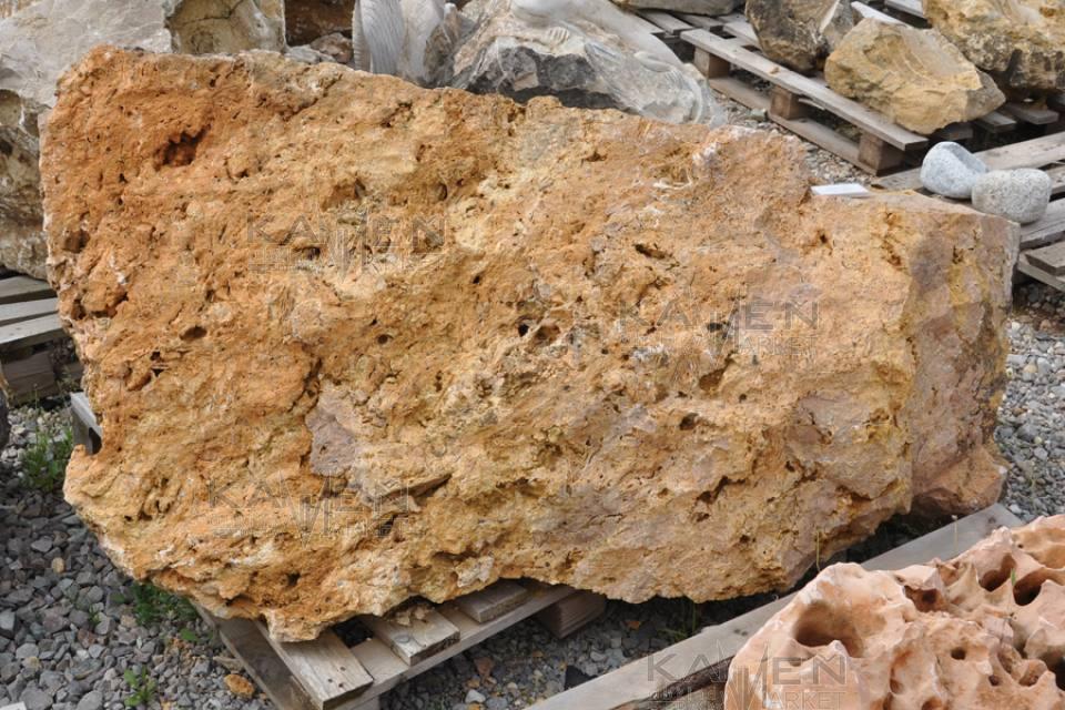 Travertínové solitérne kamene pórovitej štruktúry. Travertín VK je veľmi obľúbený u zákazníkov