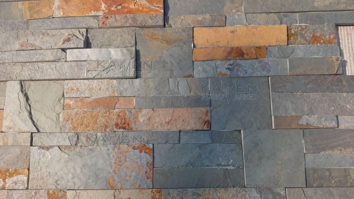 Obkladová bridlica vo forme obkladového panelu. Obklad je vhodný na stenu do interiéru alebo ako vonkajší obklad na fasádu, sokel.